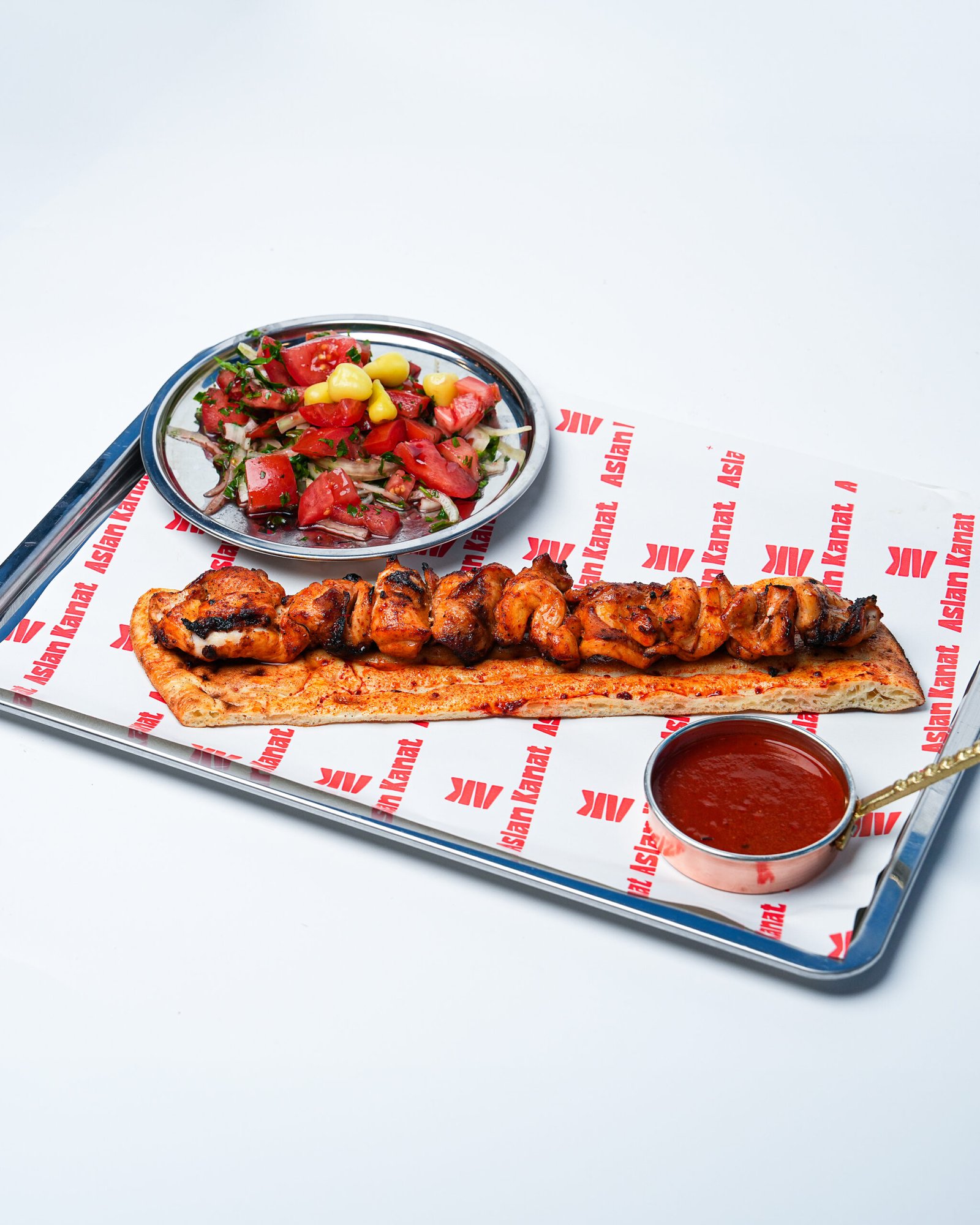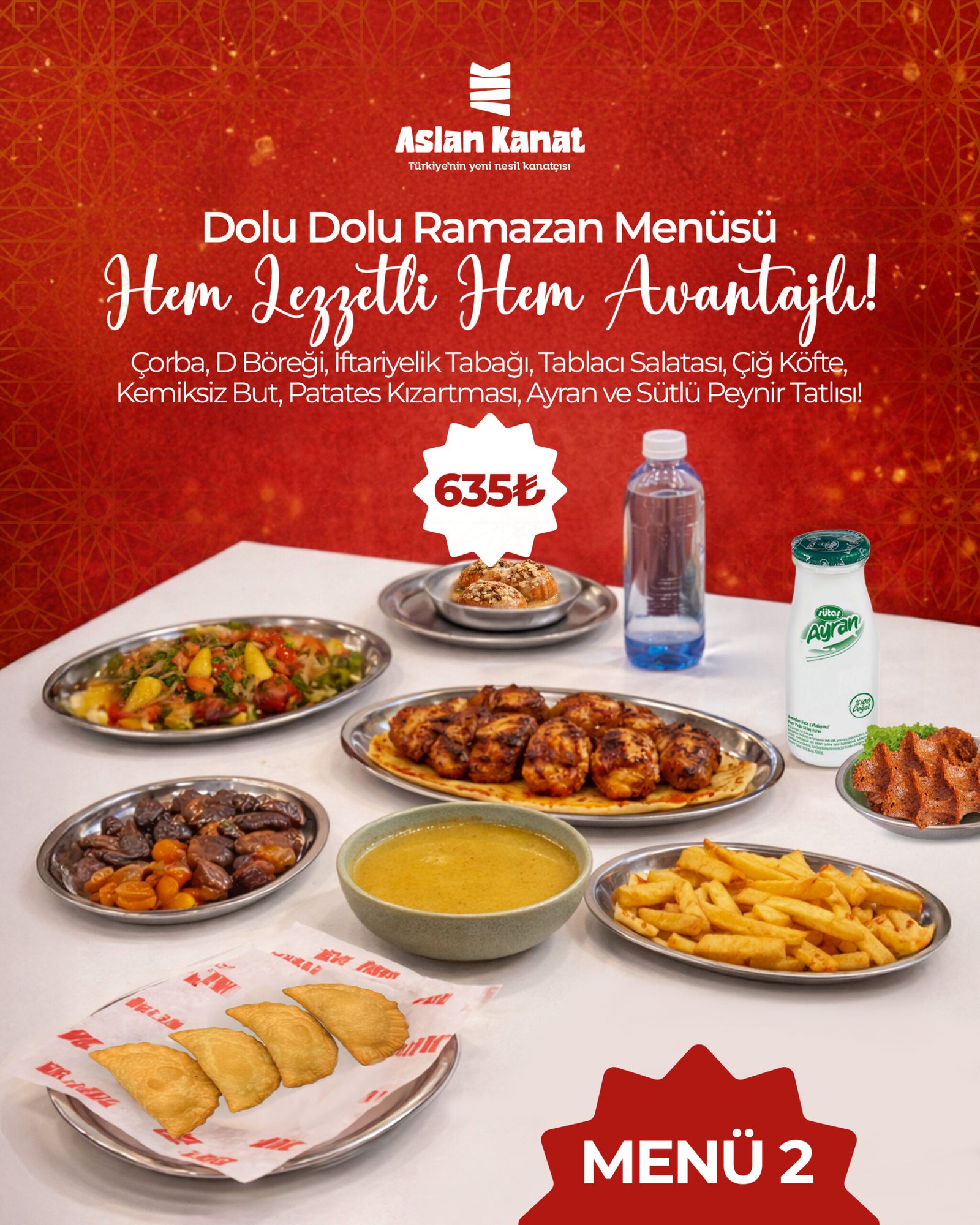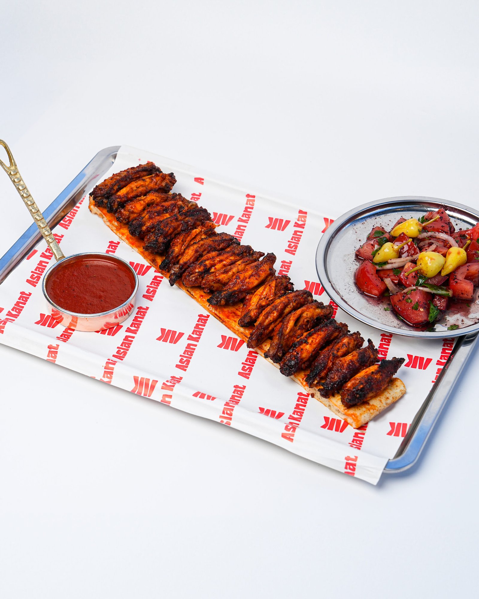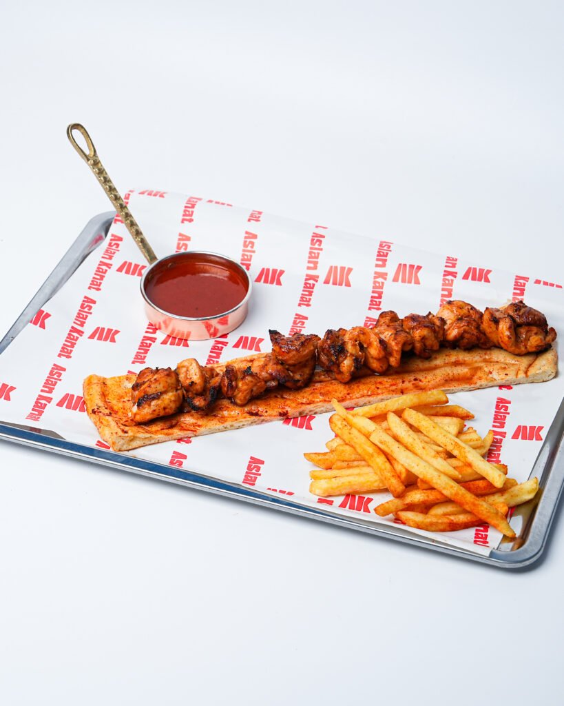 1,5 porsiyon kemiksiz special yanında tablacı salatası, baharatlı patates ve özel acı sos ile